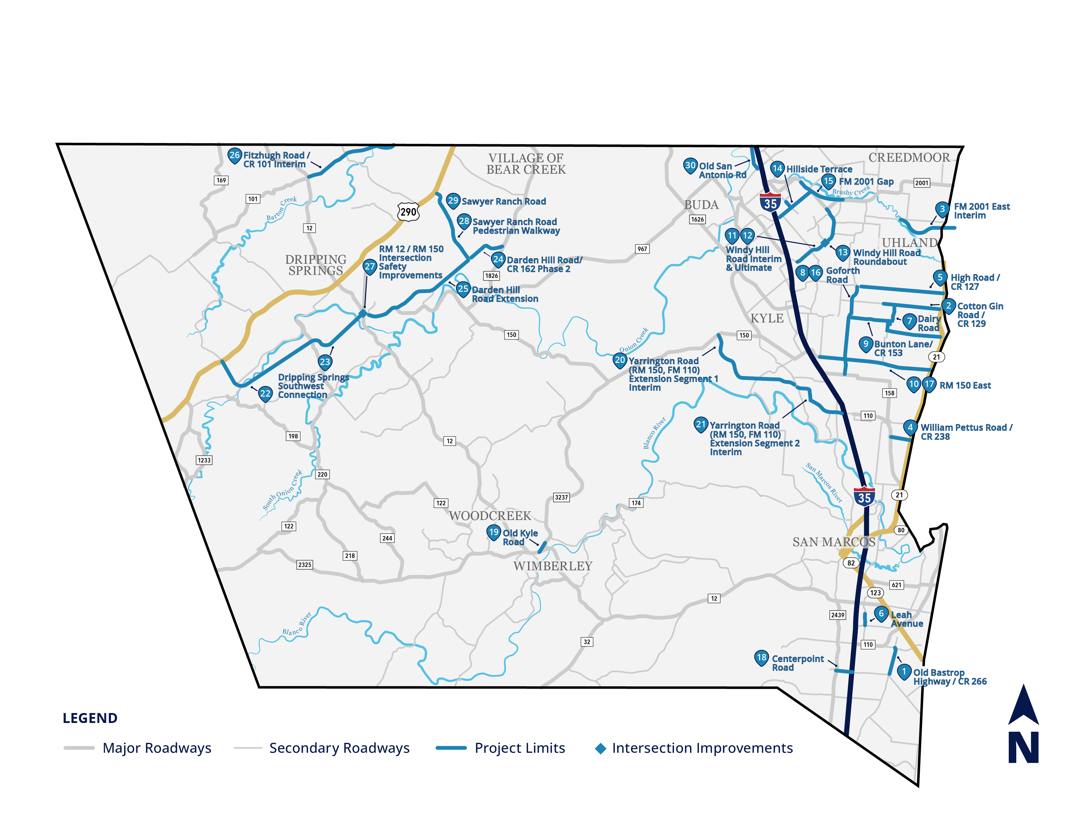In November 2024, Hays County voters approved the 2024 Road Bond package. In June 2025, a Travis County district judge ruled that the road bond package was void claiming non-compliance with a public notice requirement. The County is currently appealing this ruling while working to keep these projects moving forward.